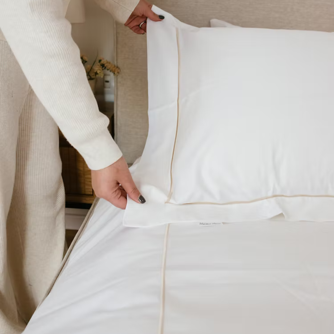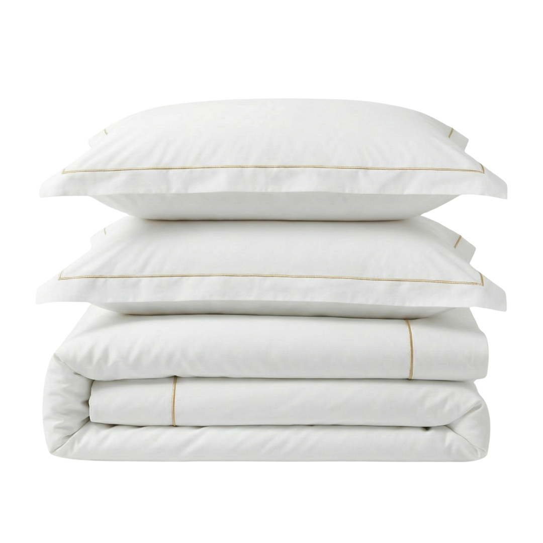 מצעים רכים ומפנקים שיהפכו את חדר השינה שלך להרגיש כמו בית מלון. מוצר הדגל שלנו, כותנה מצרית סרוגה באריגת סאטן, בצפיפות גבוהה ואיכותית לחוויית שינה מפנקת. הסט מעוצב עם גימור רקמה בצבע זהב בציפה ובציפיות, המעניק למיטה מראה מהודר ויוקרתי.