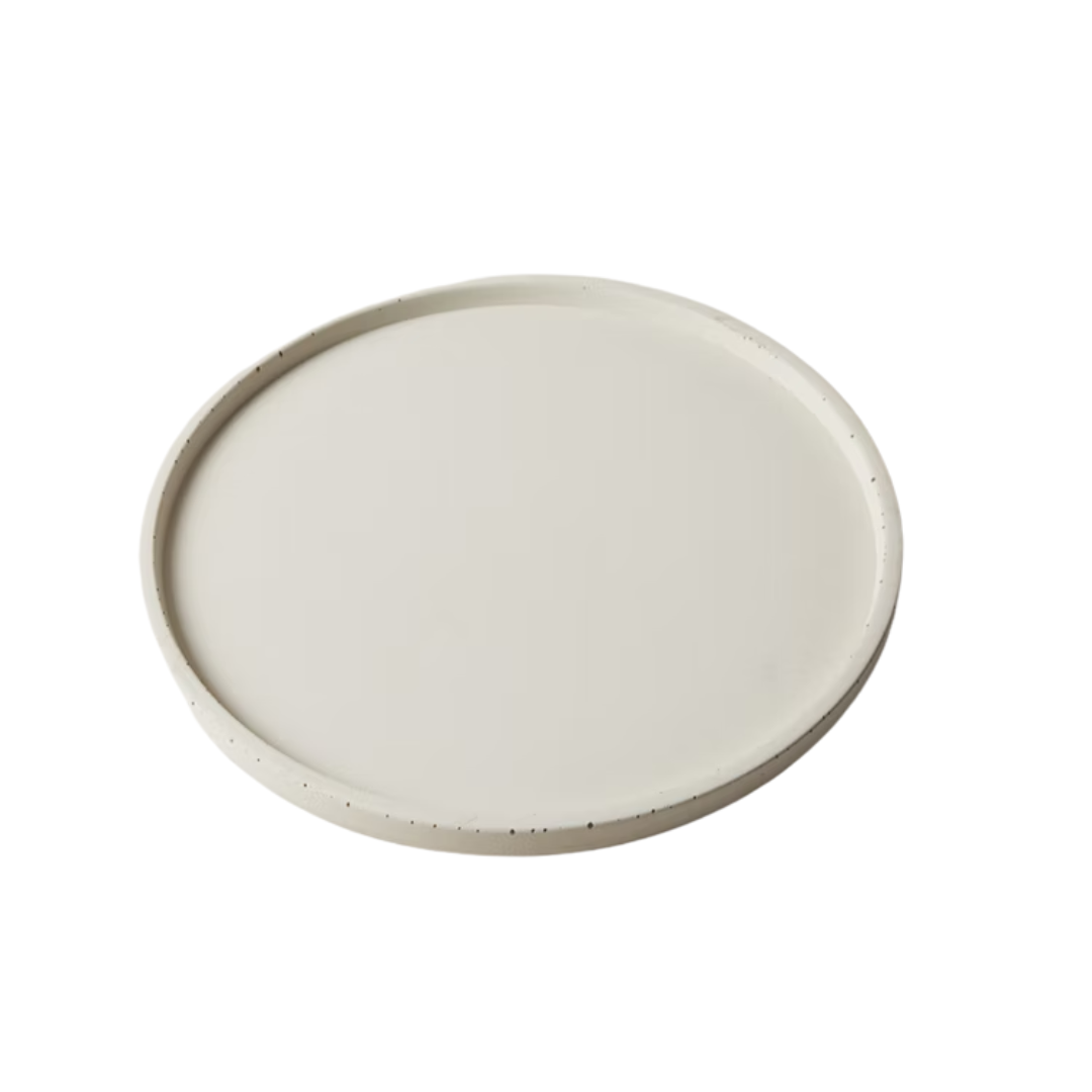 מגש עגול רב-שימושית, המיוצרת בעבודת יד מבטון בגוון בז' ייחודי שנוצר במיוחד עבור הקולקציה שלנו.