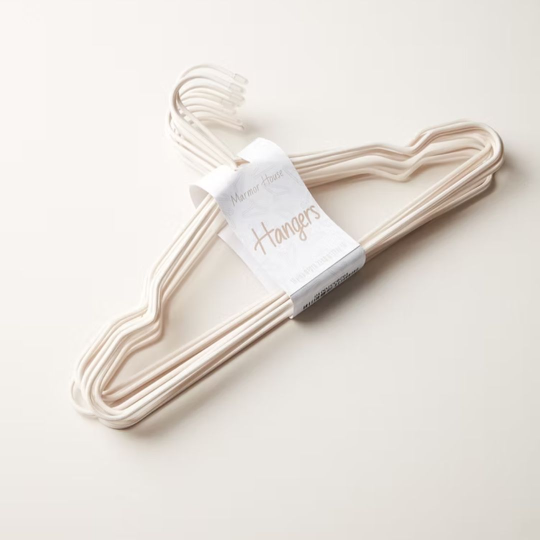 - מונע החלקה: ציפוי החוט הייחודי יוצר טקסטורה עדינה שמונעת החלקה ושומרת על הבגדים במקומם, גם על בדים עדינים.