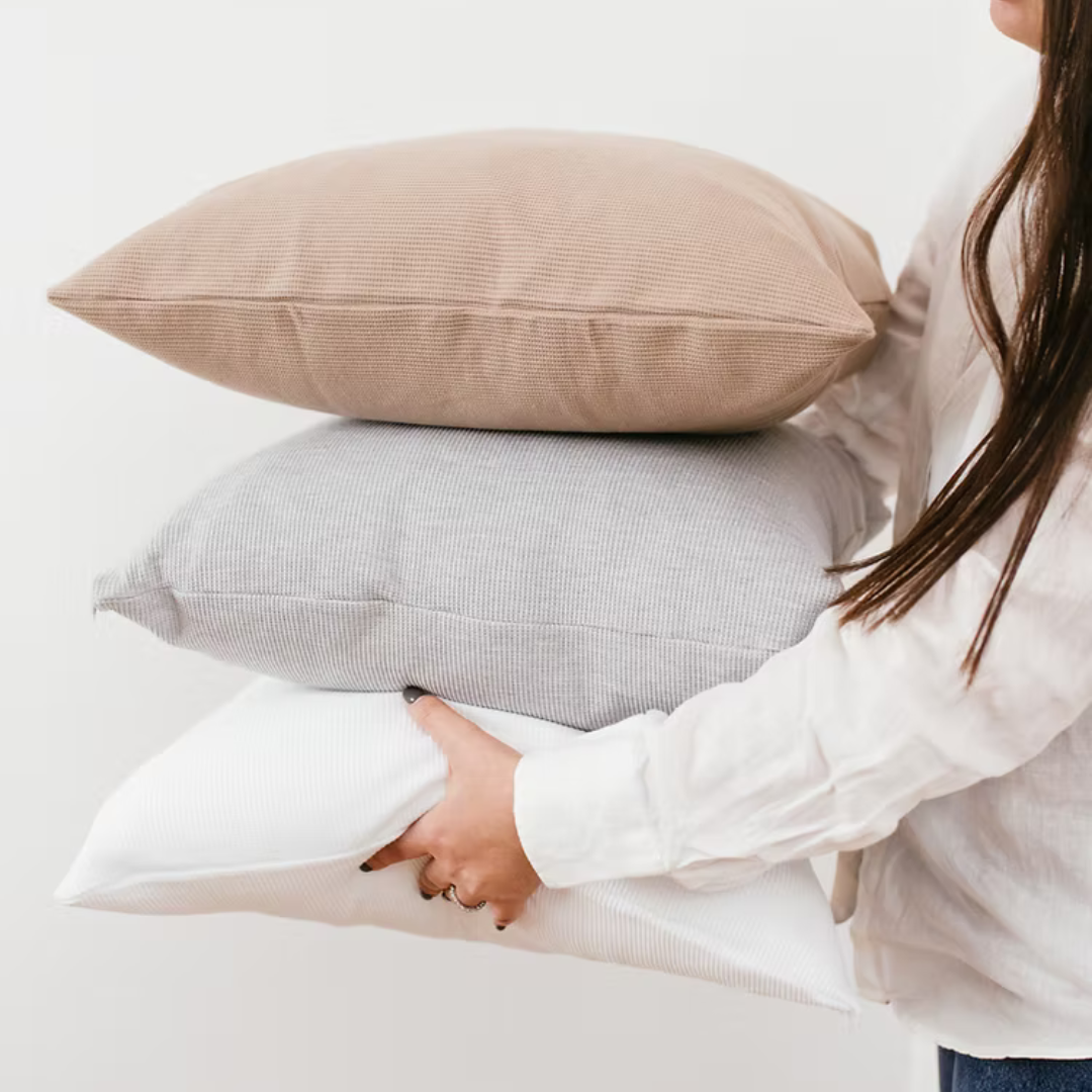 שילוב של כריות בגוונים דומים ומרקם וופל ייחודי יוצר מראה רגוע, עשיר ומלא בסטייל. ניתן להניח אותן בסלון, בחדר השינה או סתם על כיסא אהוב, לעיצוב מיטבי ולתחושת חמימות ורכות בבית.